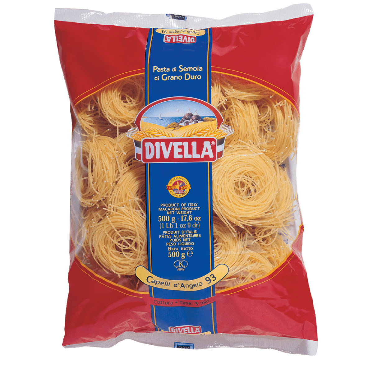 O Macarrão Italiano Divella Capelli D’Angelo Nidi 500g é uma massa extrafina, moldada em delicados ninhos, perfeita para receitas leves e sofisticadas. Produzido na Itália com sêmola de trigo duro de alta qualidade, garante cozimento rápido e textura suave, mantendo o ponto al dente característico da boa pasta italiana.